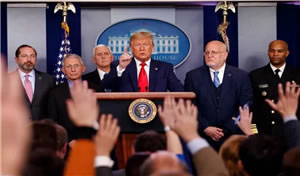 过去24小时内美国突然增加了四例新冠患者,其中一人死亡,三人病毒来源不明。特朗普有些着急了,四天内亲自召开两次新冠病毒记者会。