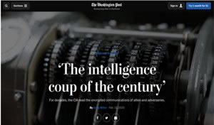 近期《华盛顿邮报》和德国电视二台的一项联合报道披露,美国和德国谍报部门曾操纵密码设备公司,以获取情报长达几十年。2020年2月11日,格雷格·米勒(Greg Miller)于美国《华盛顿邮报》发表文章《世纪情报交易》(The intelligence coup of the century),对相关文件、和有关人员采访等资料进行了综合报道,作者在本文中详细描绘了这一震惊世界的秘密情报行动的的来龙去脉。